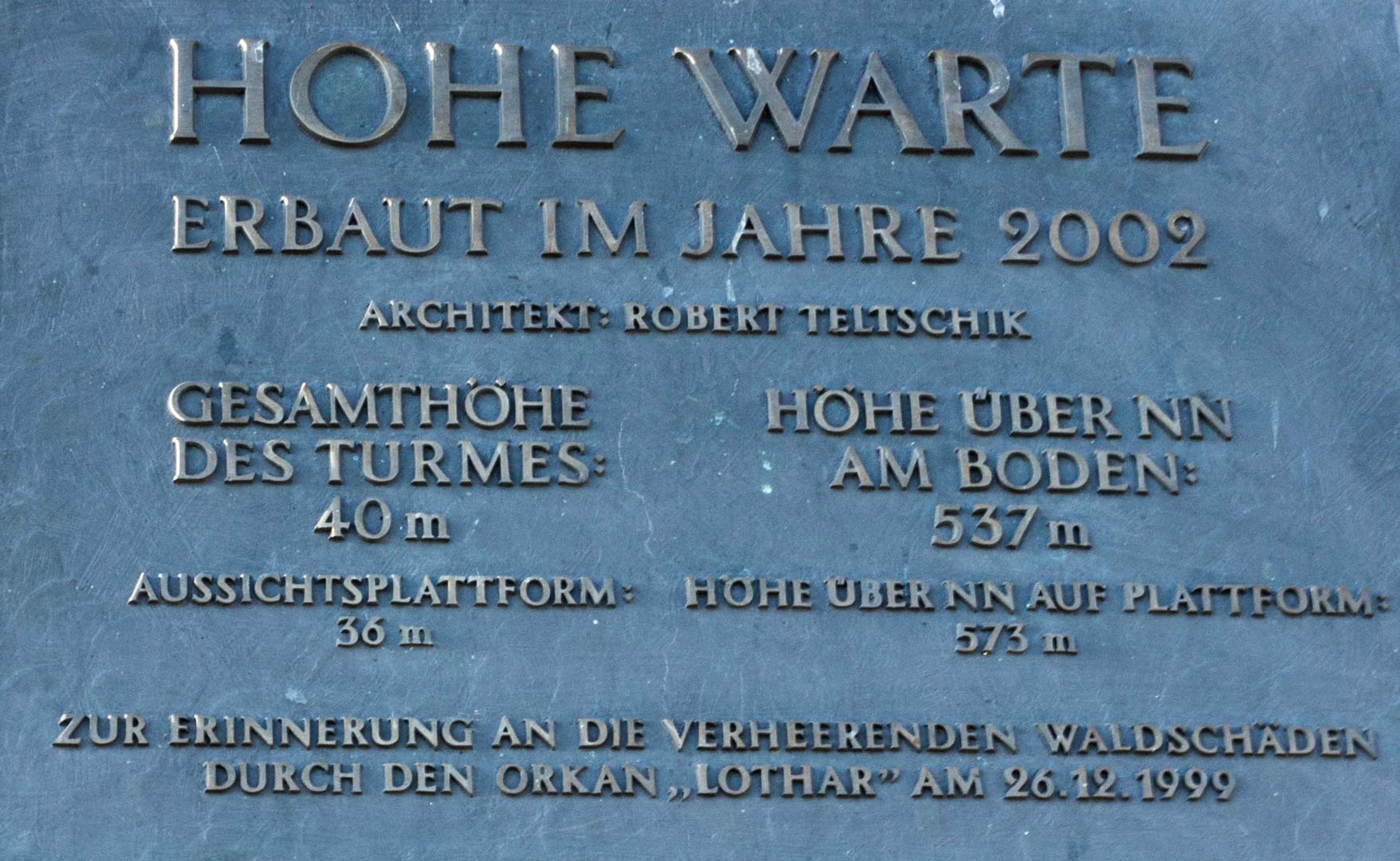 Mit einer Gesamthöhe von 40m ist die Hohe Warte der höchste Turm im Nordschwarzwald. Die Aussichtsplattform befindet sich in einer Höhe von 36m, so dass du dort oben insgesamt auf einer Höhe von 573m über NN bist.