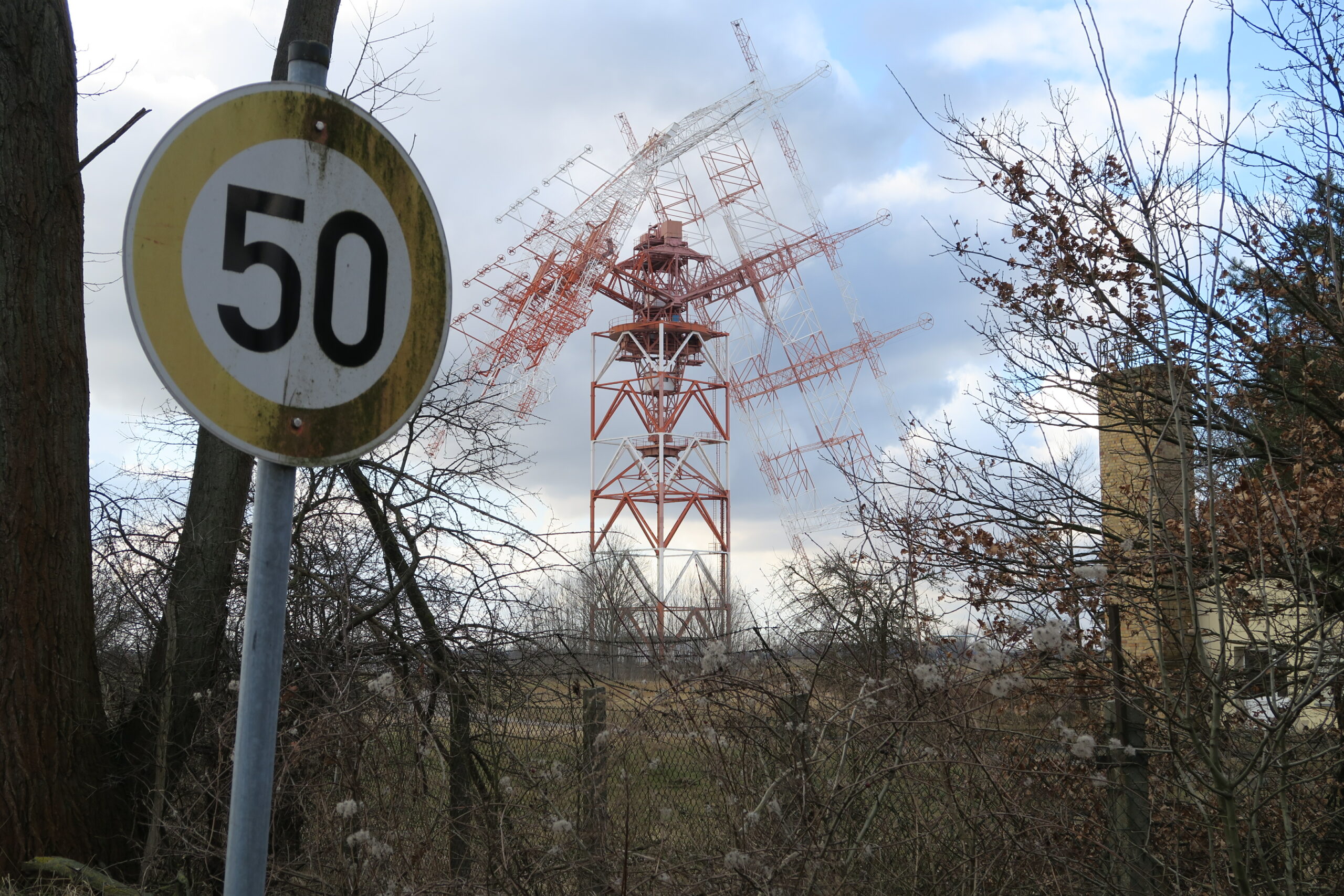 Die Anlage ist leider weiträumig eingezäunt, so dass ich nur an einen Funkmast richtig herangekommen bin, auch der im Zentrum stehende Muthesiusbau war nur schwer zu erkennen.