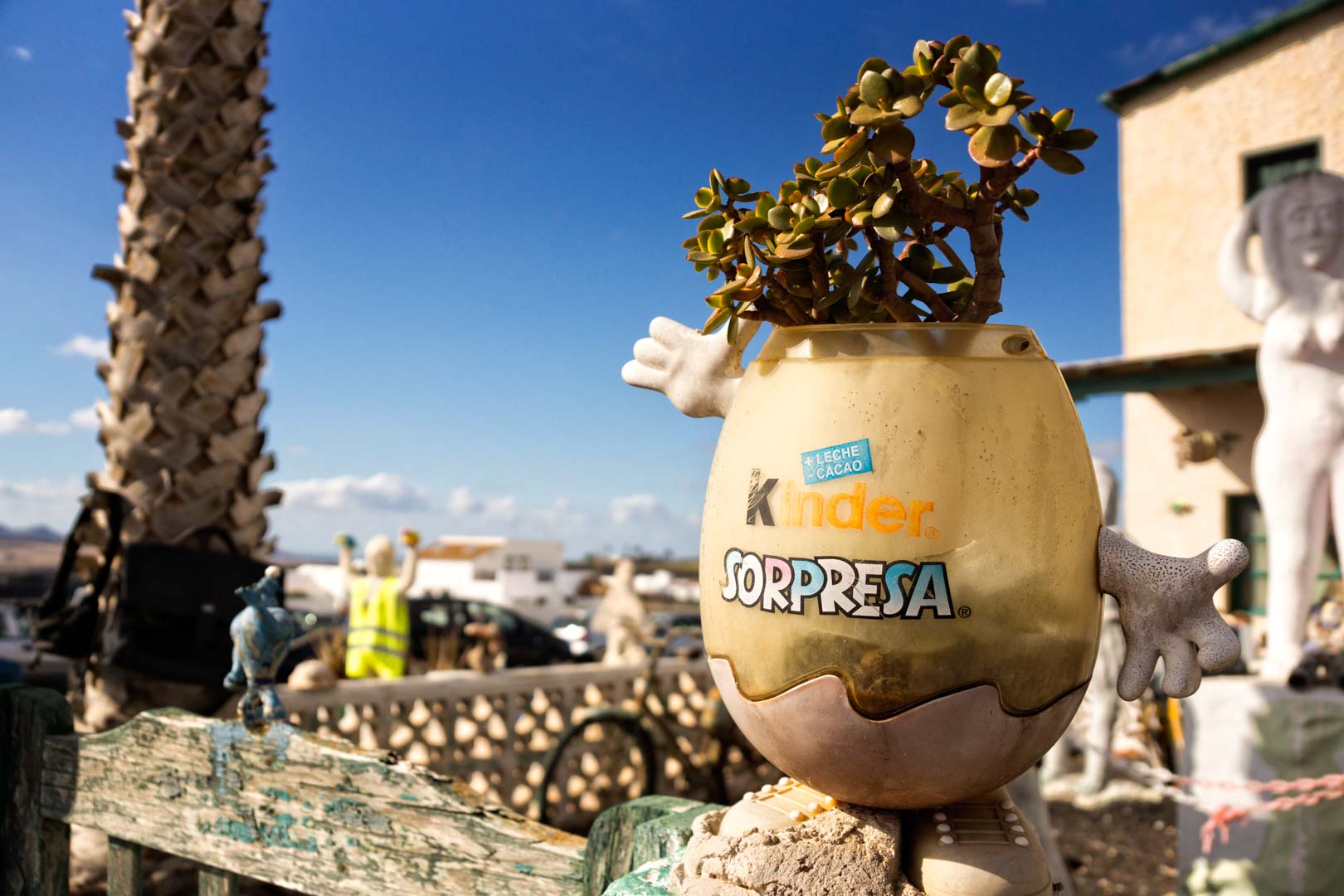 Den Figurenpark von Don Pillimpo findest du links neben der Straße, am Ortseingang von Teguise, wenn du aus Richtung Mozaga (Monumento al Campesino) kommst. Eigentlich trägt die „Ansammlung von Zeug“ den Namen „Museo Mara Mao“, das habe ich aber erst später herausgefunden. Diesen Fotospot habe ich auch nur zufällig entdeckt. Mein eigentliches Ziel war der Markt in der ehemaligen Hauptstadt Teguise, aber der Garten von Don Pillimpo stellt den Markt locker in den Schatten 🙂