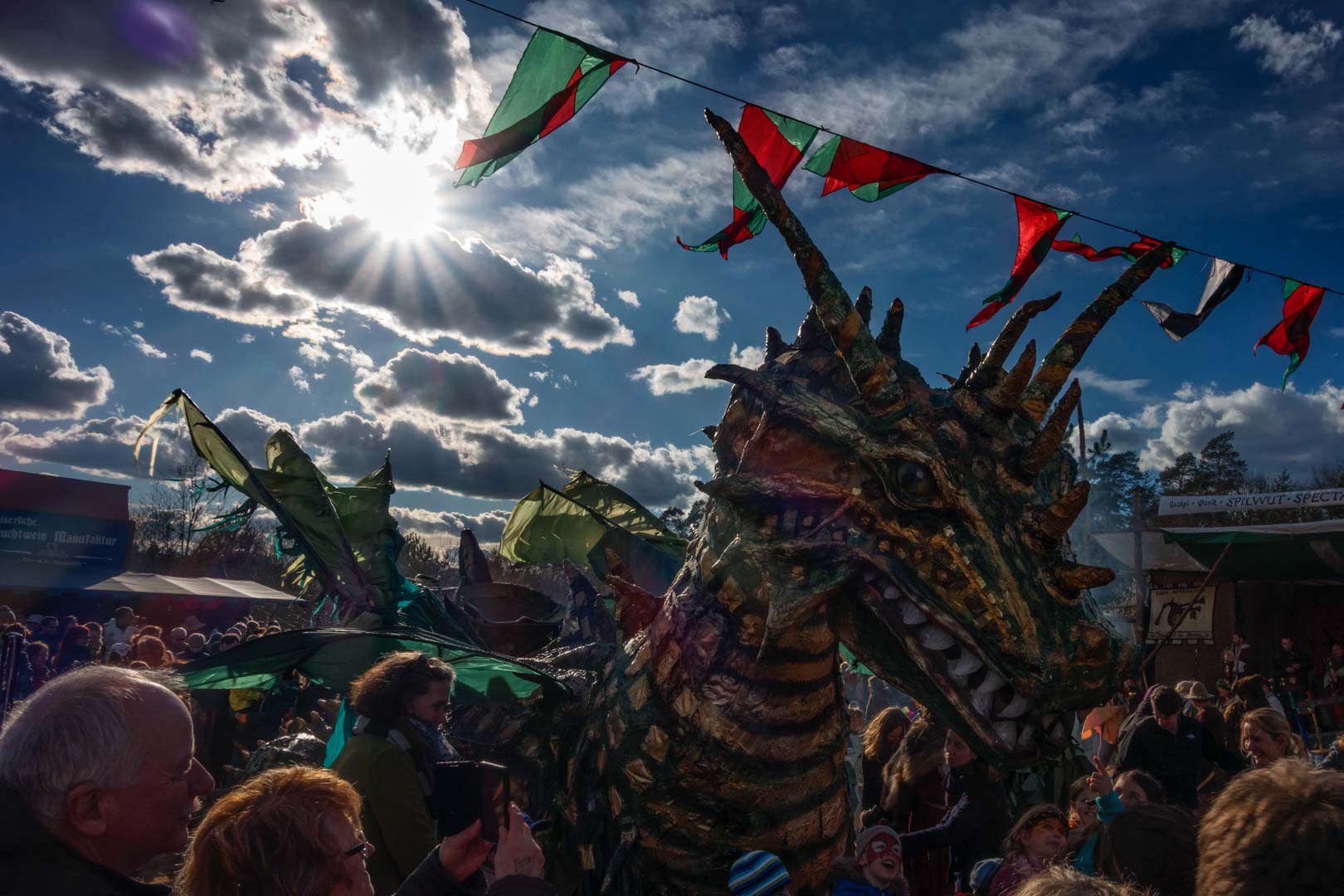 2014 war ich am Ostermontag da, 2015 am Sonntag und 2016 am Samstag. Das Programm ist an allen Tagen ähnlich. Ist also egal, wann du hinfährst. Ich hatte Spaß und die Kinder noch viel mehr. Man kann mit einer Kanone schießen, mit der Armbrust, mit Pfeil und Bogen, riesige Seifenblasen machen und als Highlight einen »echten« Drachen streicheln. Das ist aber noch lange nicht alles. Dort gibt es Buden mit Futter, mit »Kram« und Gaukler geben verschiedene Vorstellungen. Hauptattraktion sind die Theaterstücke auf der Hauptbühne.